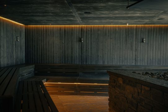 Ein weiterer Höhepunkt ist die Aufguss-Sauna in einer Blockhütte draußen neben den Whirlpools. Die sprudelnden Pools mit den starken Düsen sind perfekt, um unterm Sternenhimmel in eiskalten Winternächten Körper und Seele zu entspannen.